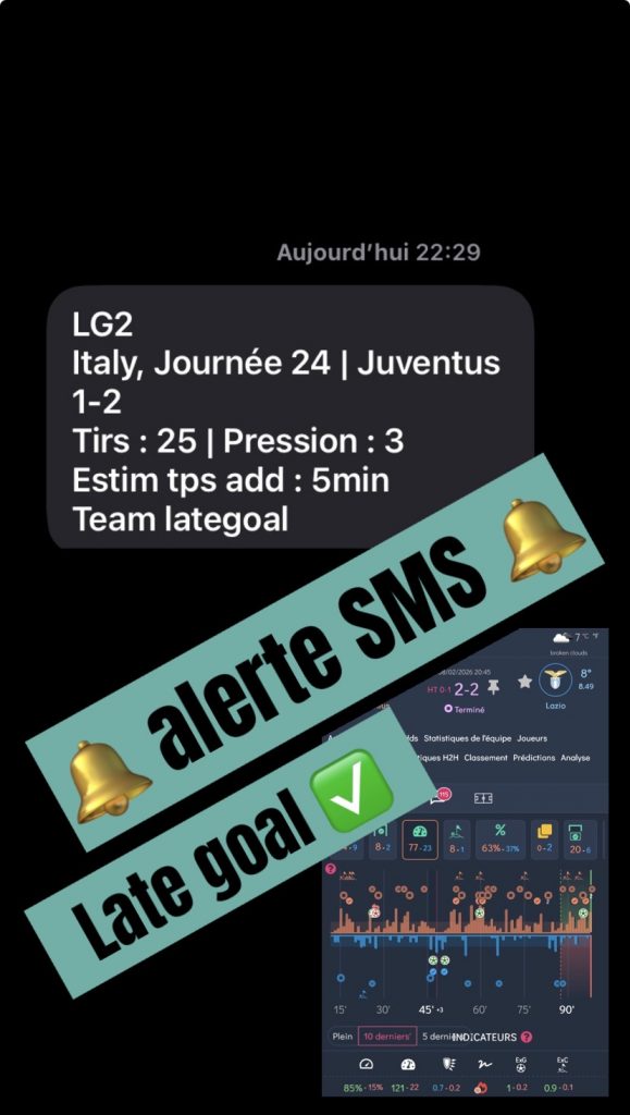 « Avant je faisais des combinés prématchs sans stratégie. Maintenant j’utilise les alertes lategoal.fr pour parier en live avec une approche plus rigoureuse. »